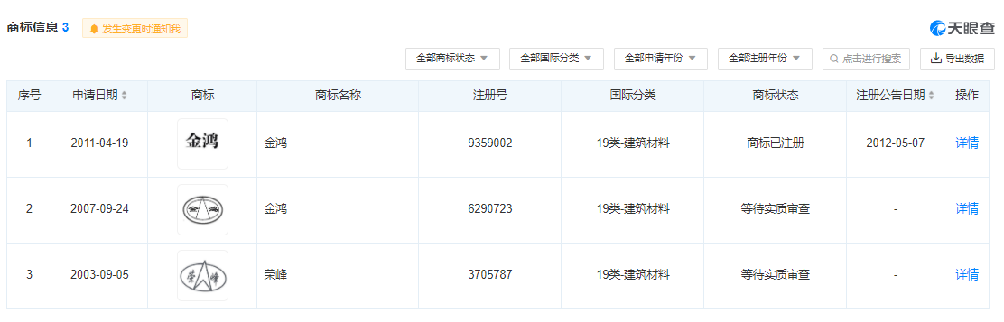 水泥人網注意到,上述水泥包裝袋上標稱的“佳豐天瑞”商標申請并未通過。