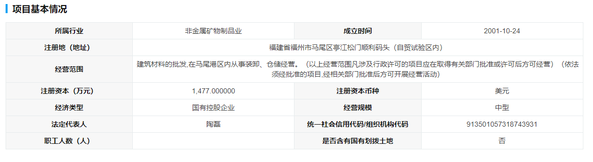 華潤水泥(福州)有限公司企業地址位于福建省福州市馬尾區亭江松門順內從事裝卸、倉儲經營等。