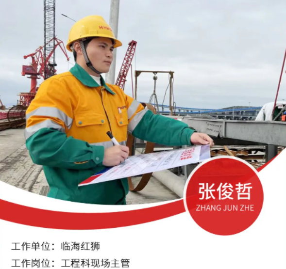 張俊哲,2022年7月調入臨海紅獅,主要負責公司500萬噸水泥中轉配制站項目碼頭裝卸及輸送廊道工程建設項目。在工程質量監督中始終堅持原則,把好工程質量驗收關。去年12月,皮帶機廊道樁基施工階段,終孔驗收過程中,發現測繩承重異常,經檢查發現鋼筋上纏繞大量測繩,致使孔深未達到要求,督促施工班組及時整改,避免項目安全質量問題。張俊哲平時熱愛學習,不斷提升儀器運用水平、學習CAD繪圖等軟件使用技能,以更好地服務于項目建設。