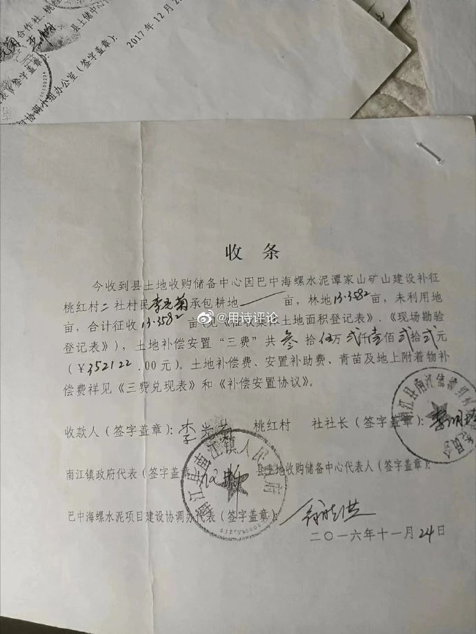 相關內容顯示:四川巴中市南江縣原南江鎮桃紅村二社村民李光菊向領導反映土地被強征維權十年未果的事情。其中提到,2013年10月巴中海螺水泥有限公司進駐南江縣建水泥廠,南江縣成立了“南江海螺水泥廠征地協調辦”負責海螺征地協調工作,協調工作辦主任在海螺公司建廠征地中亂作為、胡作為、不作為、獨斷專橫。在沒有出示征地公告、征地批文、沒有與其簽訂征地補償協議的情況下??v使海螺公司人員用鏟車、挖掘機等機械強行將其林地、田地及附著物摧毀。十年來,其多次反映,均未得到回復。