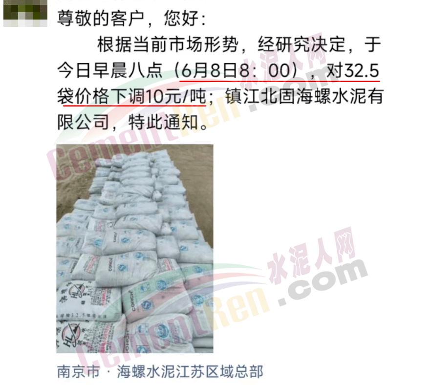 海南鑫華海茂供應鏈管理有限公司通知根據目前水泥市場行情走勢趨向做出調整,經公司研究決定,自2023年6月8日零時起,澄邁、文昌、瓊海出貨點的散裝、袋裝品種水泥出廠價格下調20元/噸。