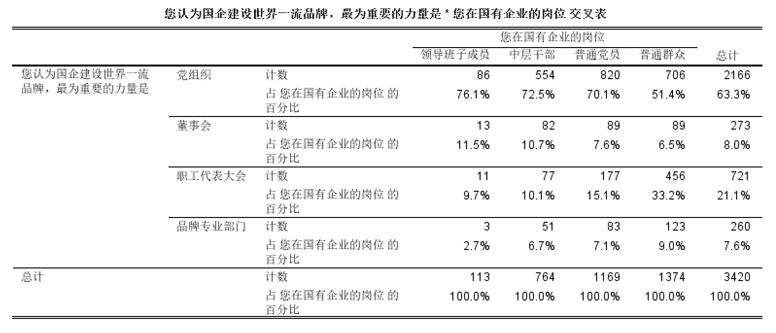為更加全面了解我國國有企業黨組織領導打造世界一流品牌的現狀,本課題組采用問卷調查法,面向多個中央企業和地方國企的職工發放了3420份問卷,并結合學界研究成果和調研結果,總結出當前國企黨組織領導打造世界一流品牌的成就以及存在的問題。