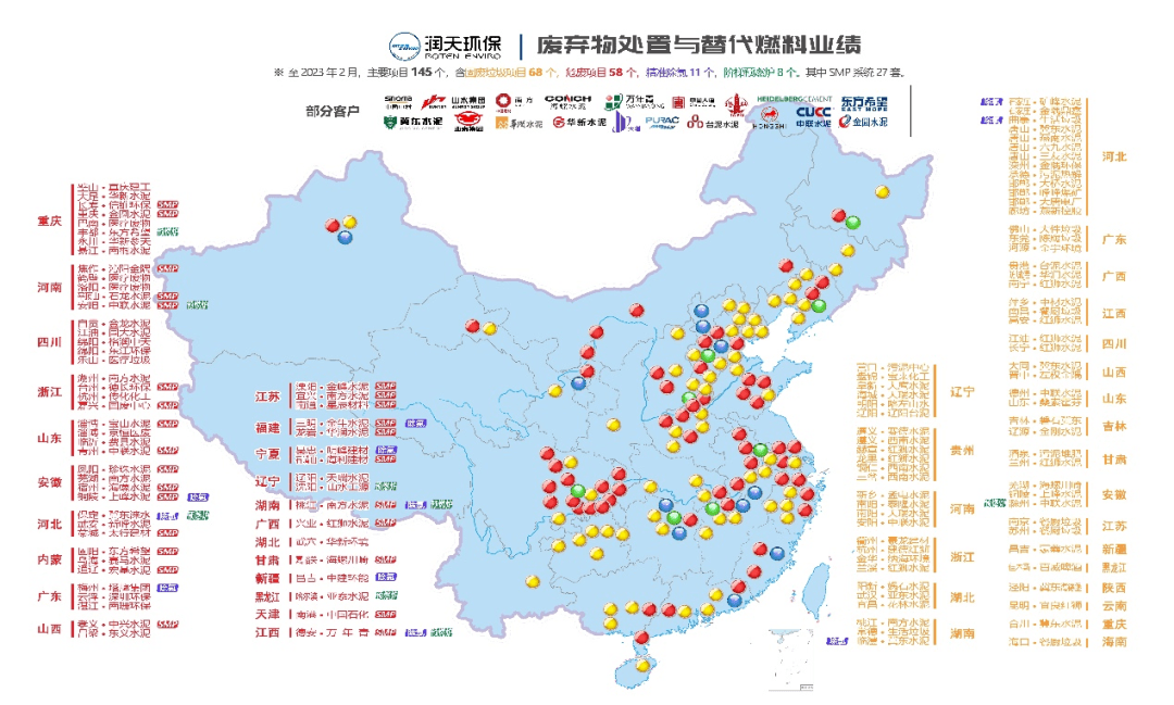 截至目前,潤天環保已成功為中國建材、海螺水泥、金隅冀東、紅獅水泥、臺灣水泥、亞洲水泥、金圓水泥、華新水泥、山水水泥、萬年青水泥等各大水泥集團落地了廢棄物協同處置、水泥窯燃料替代等多類項目。多家水泥企業實踐應用證明,潤天環保水泥窯協同處置危險廢物通過科學配伍,可以保持較高的焚燒熱值,在窯內處置時可以部分替代燃料使用,有效降低了化石燃料的消耗,符合國家“碳達峰、碳中和”目標。協同處置危險廢物后產生的灰渣進入水泥熟料,增加了水泥熟料的產量,真正意義上實現了危險廢物“零填埋”的終端處置目標,符合無廢城市建設政策導向。