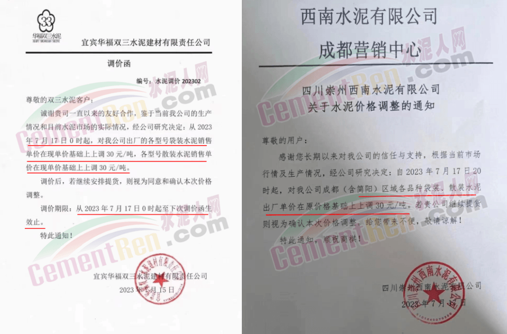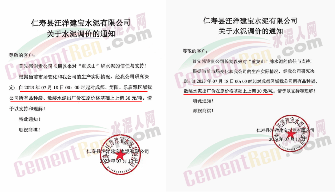 據水泥人網近期消息,四川省內多家品牌企業通知上調水泥報價30-50元/噸。(相關鏈接:大漲50元/噸!華潤、華新、紅獅價格集體反彈!)