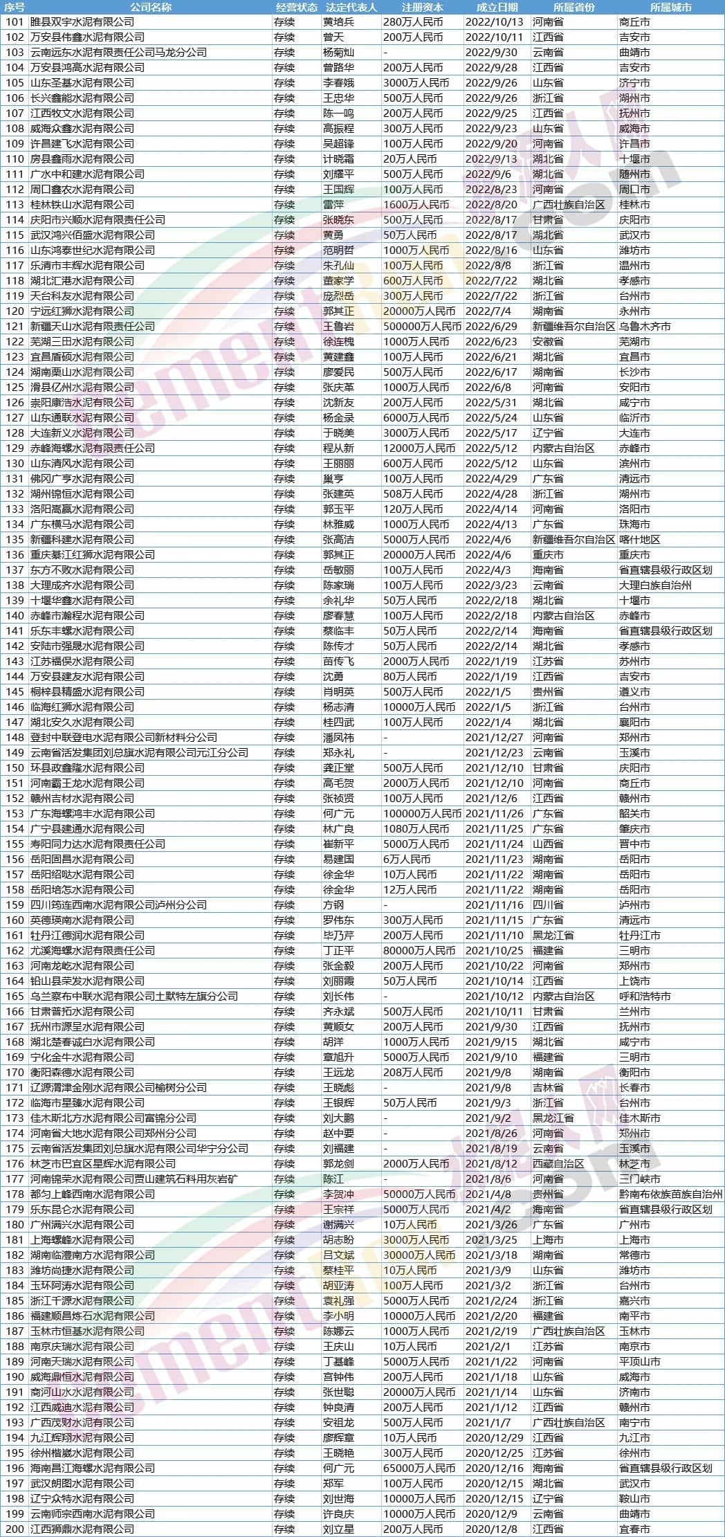水泥人網注意到新成立企業中包含近年來新增產能較大的廣西區域,新成立企業包含知名企業廣西來賓海中水泥有限責任公司、廣西錦象水泥有限公司、廣西北江水泥有限公司、廣西京蘭水泥有限公司、都安上峰水泥有限公司等13家水泥公司。