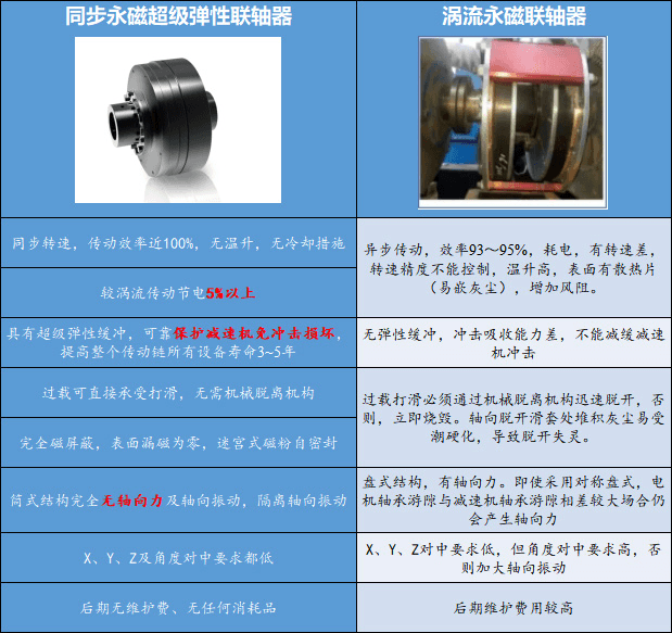 具體詳見同步永磁超級彈性聯軸器與渦流永磁聯軸器對比表: