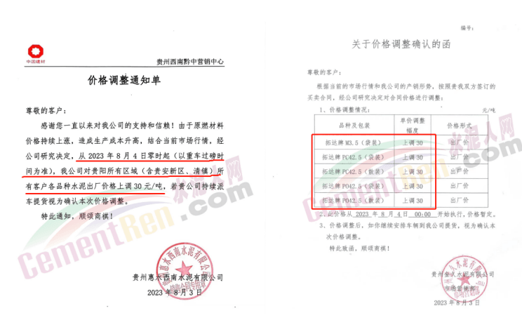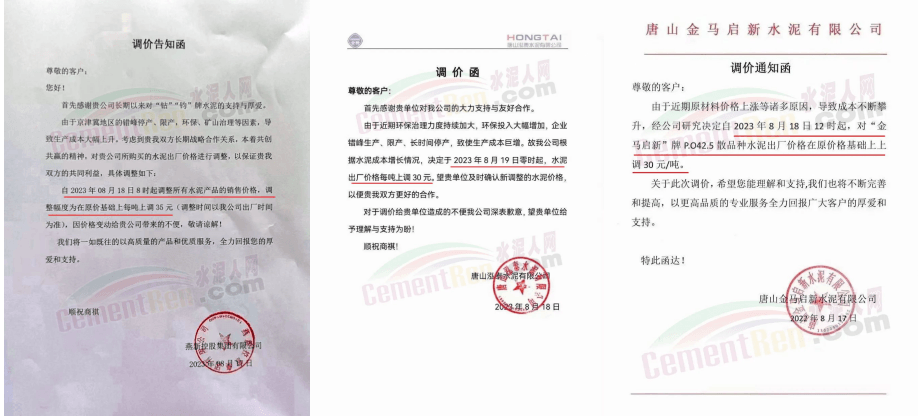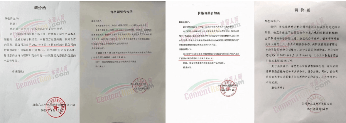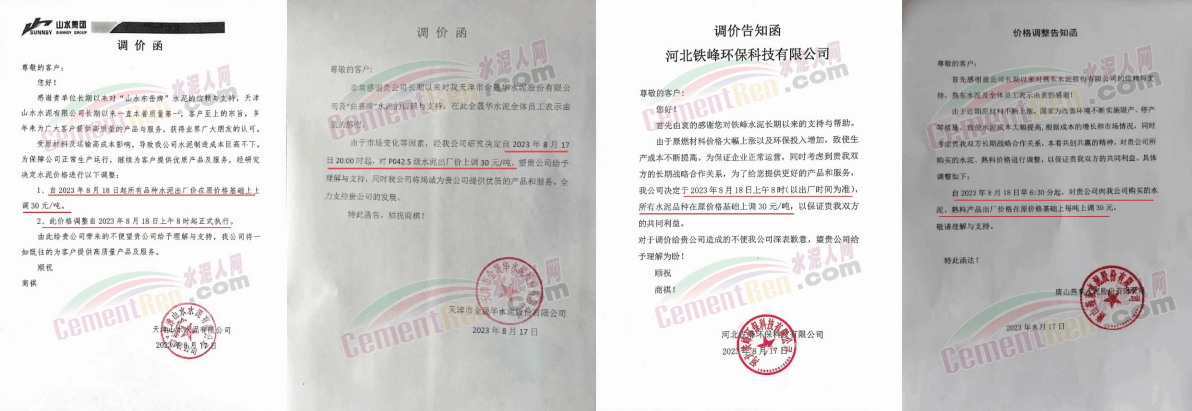 河南區域8月份以來已經分別于8月4日和11日前后連續兩次上調報價,累計上調50-60元/噸,涉及當地包括天瑞水泥、中聯水泥在內的數十家主要品牌企業。