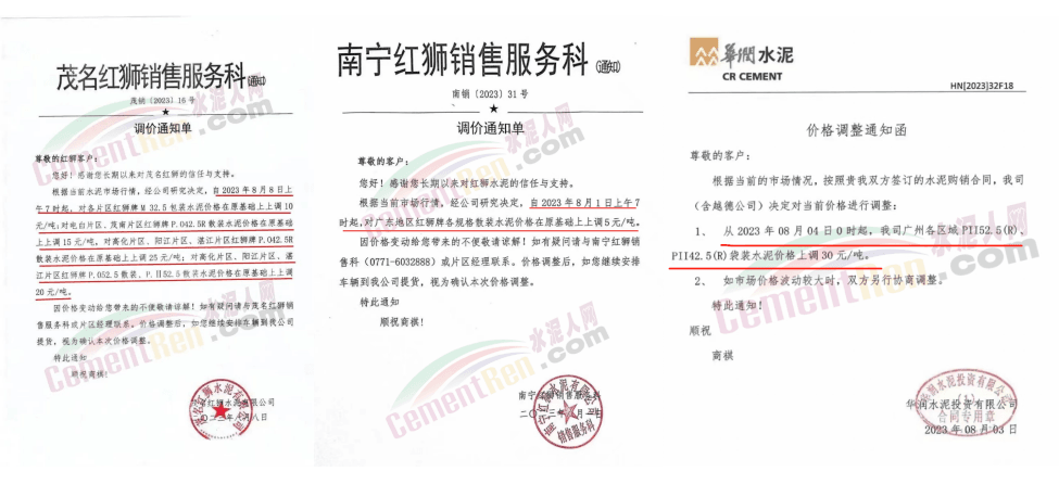 8月以來,華南廣東地區包括主要品牌企業華潤水泥、紅獅水泥、錦象水泥在內的多家企業通知上調水泥報價。涉及湛江、陽江、高化廣州及珠三角區域多個市場。