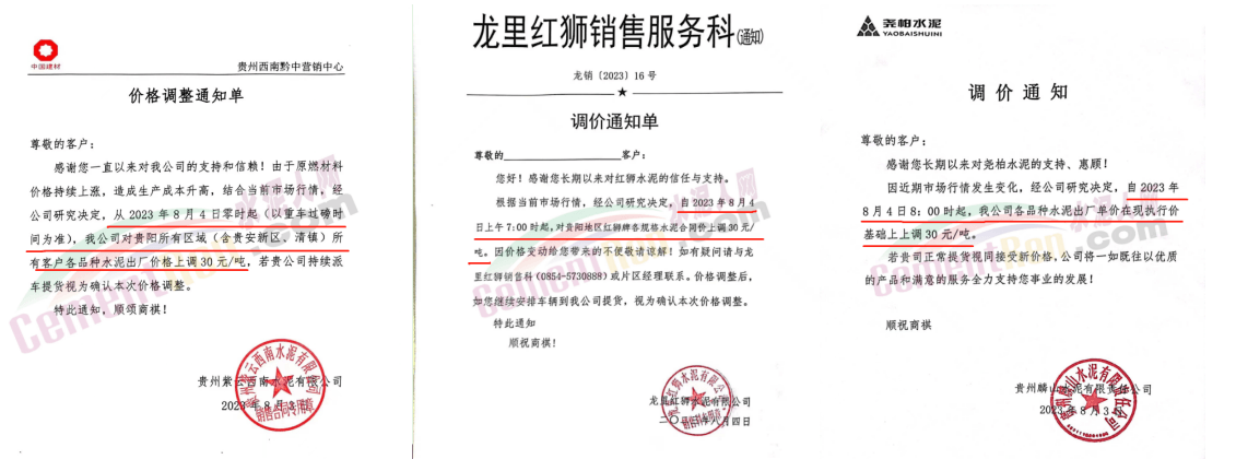 貴州區域包括紅獅、海螺、臺泥等10多家企業宣布漲價