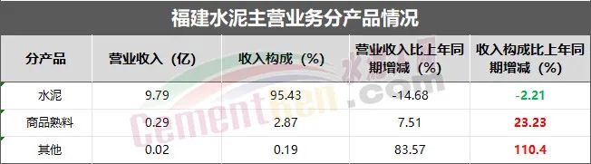 今年上半年,福建水泥水泥營收及占比雖均有所下降,但仍是收入構成的核心業務,占比95.43%。商品熟料和其他業務營收及營收占比同比去年均有所增加。