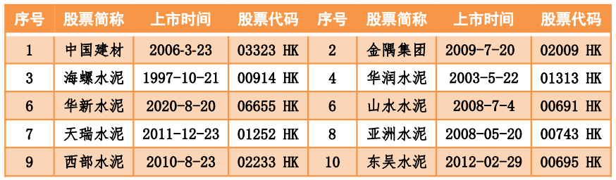 20多年來,中國上市公司的規模不斷擴大,質量逐步提高,在行業經濟運行中的重要性日益突出,已經成為水泥行業發展的一個縮影。據不完全統計,中國水泥行業上市公司數量為30家左右(有熟料、水泥生產業務),A股水泥行業有22家上市公司,H股有10家上市公司,其中海螺水泥、金隅集團、華新水泥為A股H股同時上市的公司。