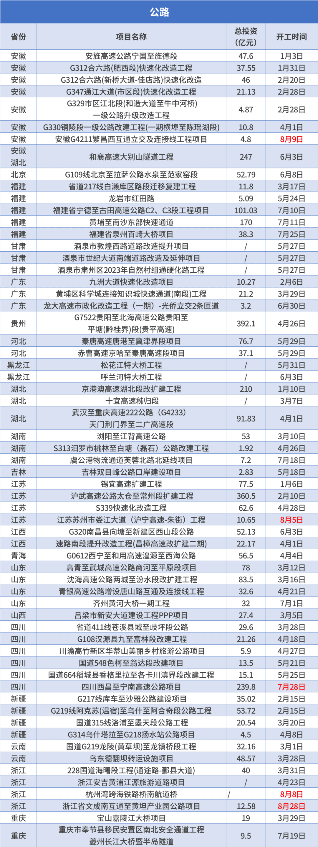 據不完全統計今年1月-8月末全國共有7914個重大基建項目開工,累計總投資達56953.3億元。