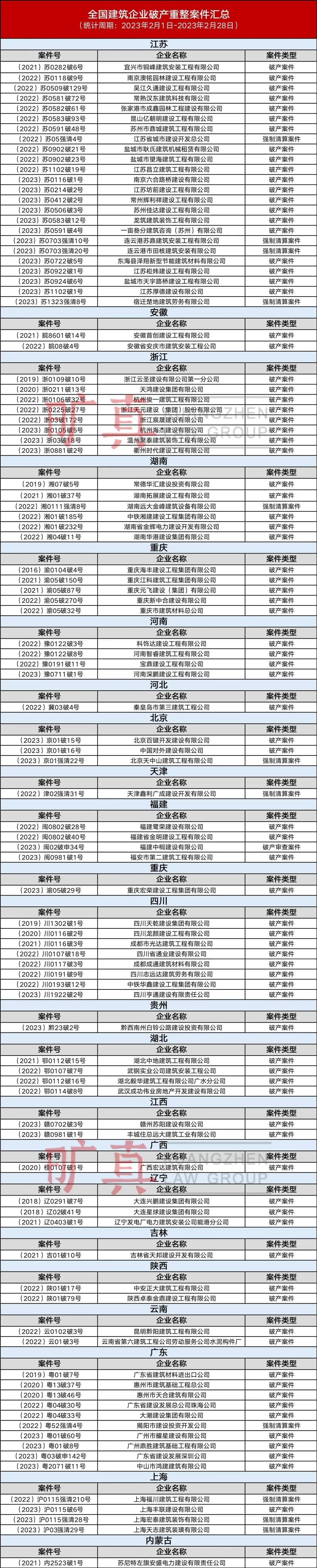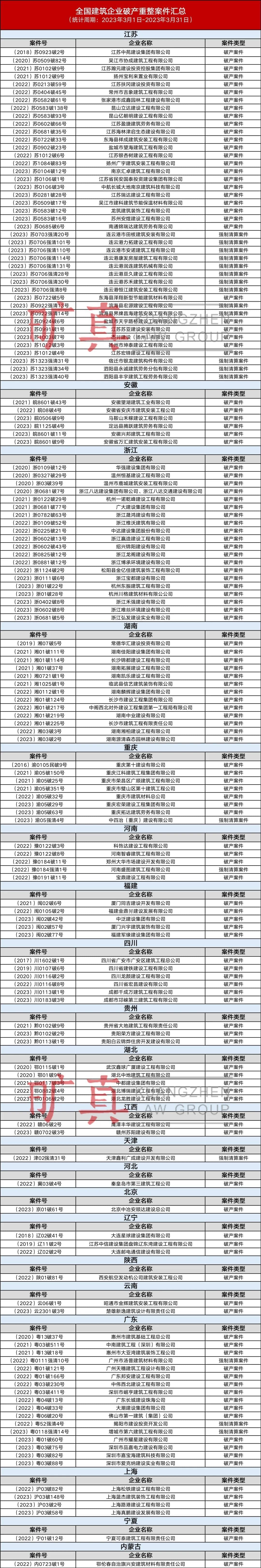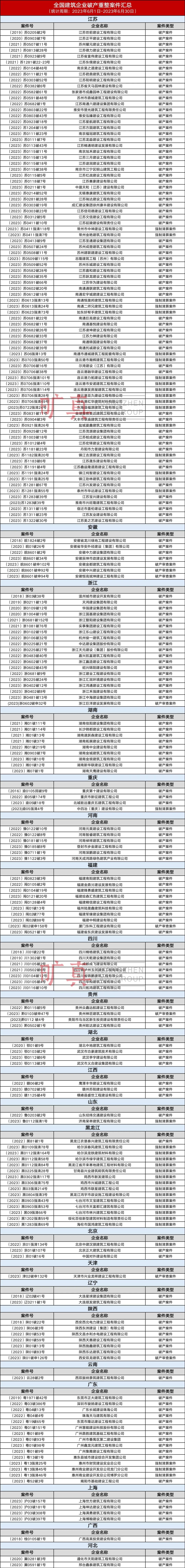 附2023年1-8月全國建筑企業破產重整案件匯總