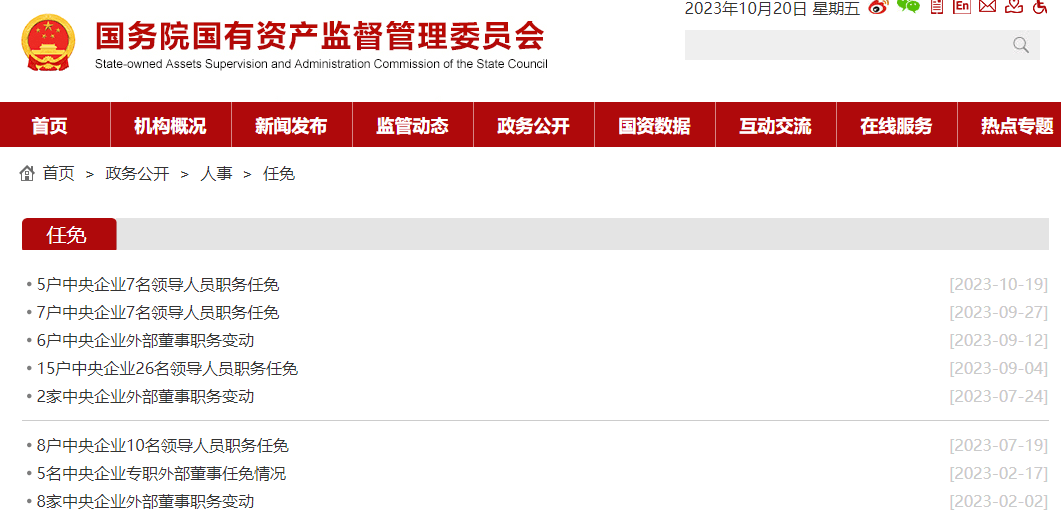 近期,國資委網站連發多條央企人事變動消息。截至目前,年內央企人事變動已經涉及56戶企業,多位領導到年齡退休。