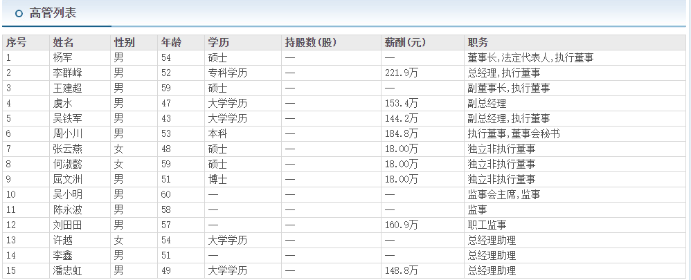 水泥人網注意到,海螺水泥上市公司高管列表15位高管中有9位年齡在50-60歲之間,占比達60%。其中包括董事長楊軍,副董事長王建超,董秘周小川,總經理李群峰,總經理助理許越等人。監事暨監事會主席吳小明已于今年9月26日遞交了書面辭職報告,因其已達到法定退休年齡,申請辭去監事會主席暨監事職務。