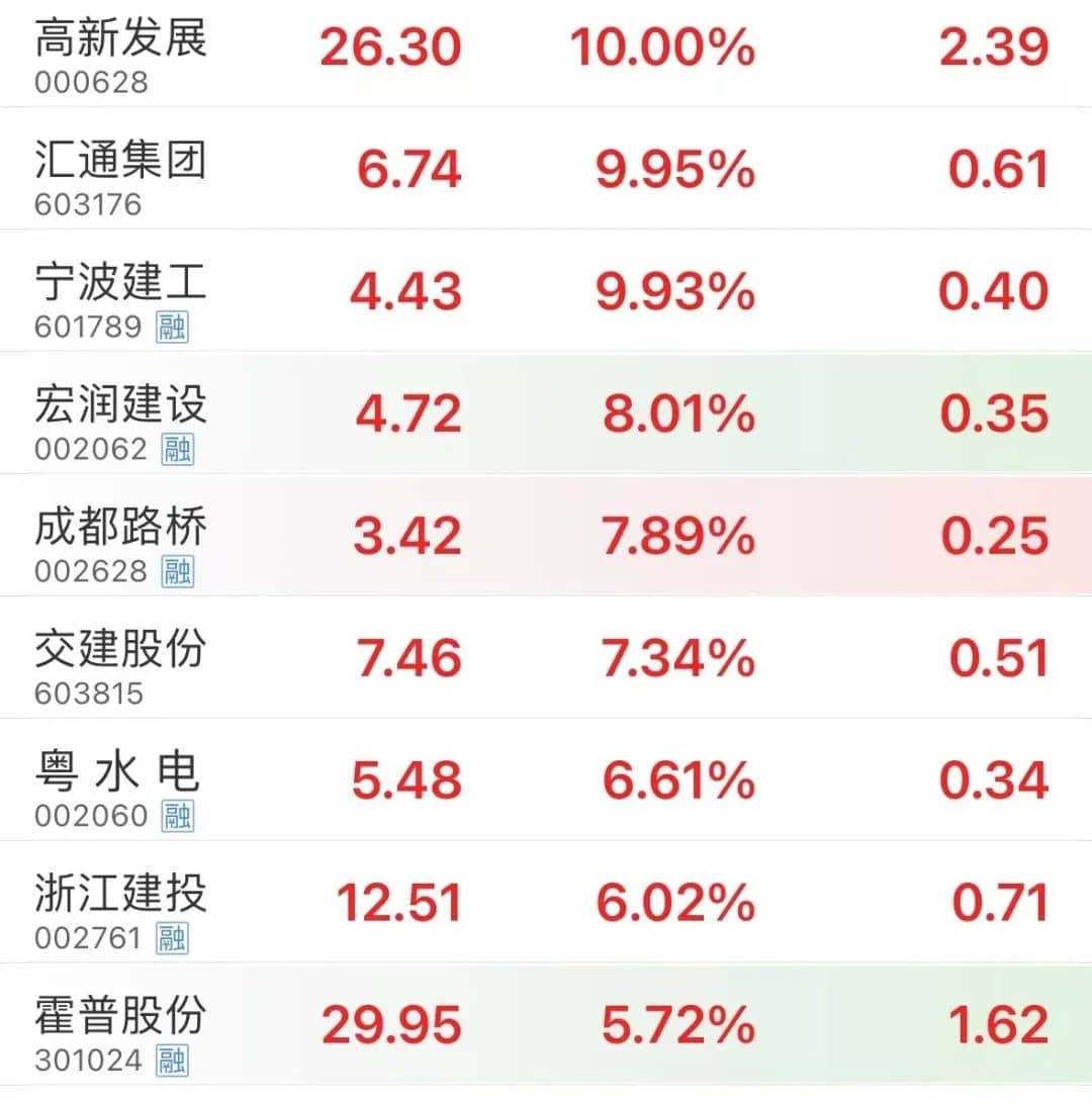 工程建設板塊中,高新發展、安徽建工、匯通集團、寧波建工等漲停,宏潤建設、成都路橋、交建股份等漲幅靠前。
