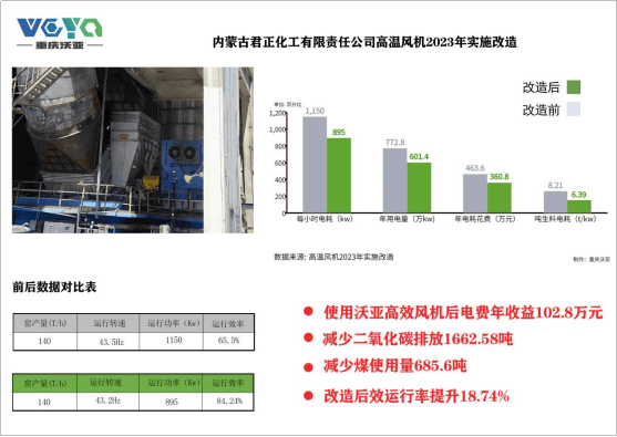 1. 年電費收益:通過使用重慶沃亞高效風機,公司實現了年電費收益102.8萬元。這一數字不僅體現了改造項目的成功,也意味著企業在經濟方面受益良多。