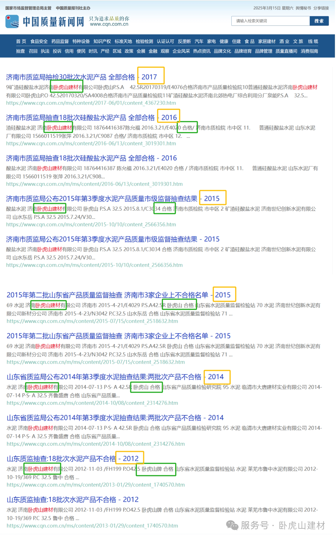 臥虎山建材丨品質筑基,連續多年抽檢合格