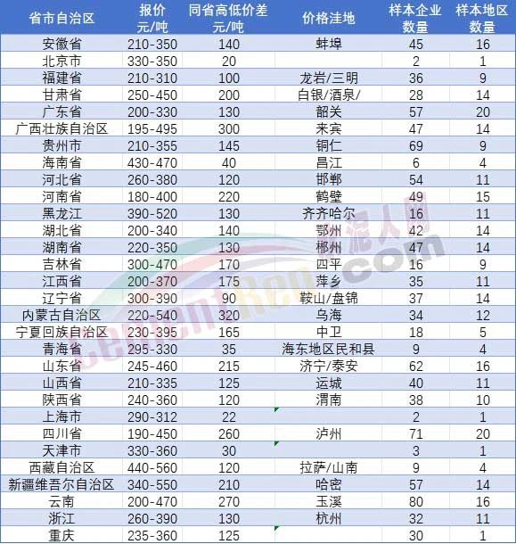水泥人網信息中心最新調研數據顯示:全國31個省市1070余家企業中,廣西來賓、河南鶴壁、四川瀘州等區域水泥報價已跌破200元/噸。寧夏銀川批發價下探至150-170元/噸,成為價格“深坑”。多區域價格撕裂加?。簭V西壯族自治區內價差高達300元/噸,內蒙古自治區內價差320元/噸。水泥核心消費市場之一的華東地區竟成了低價“重災區”:安徽蚌埠210元/噸、福建龍巖210元/噸、浙江杭州260元/噸。